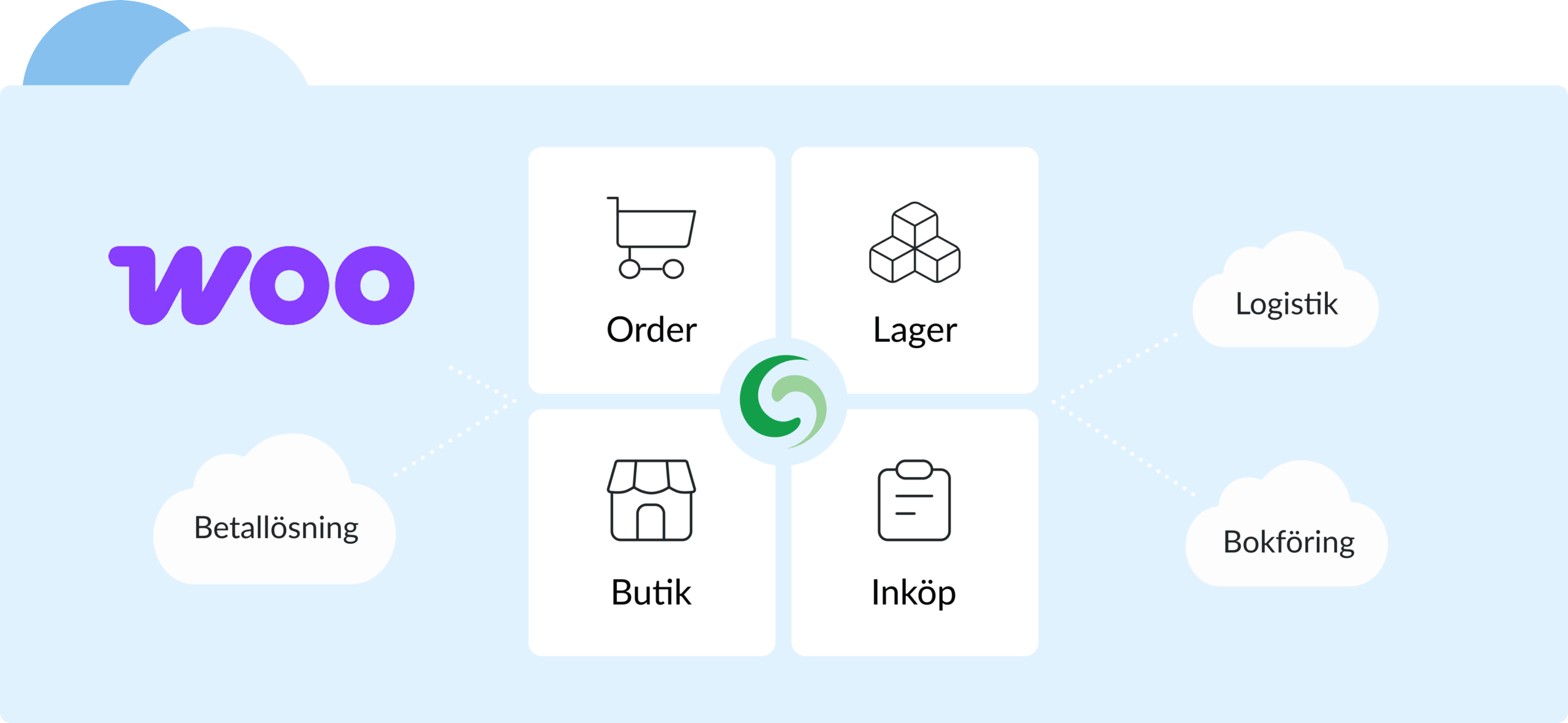Kombinera WooCommerce och Specters molnbaserade WMS lagersystem och POS kassasystem. Förena säljkanaler, lager och varuflöden för effektiv hantering av e-handel och butiker.